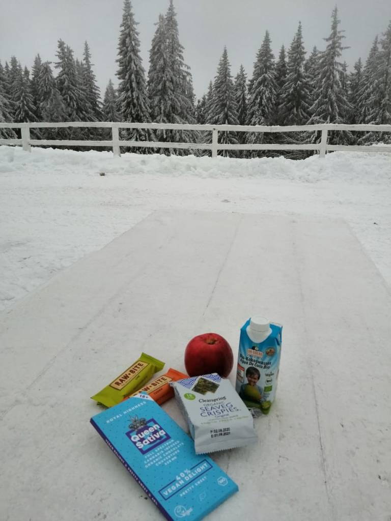 gustare vegană pe munte, iarna