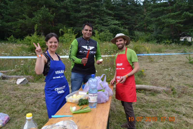 Înainte de concurs am stat de vorbă cu membrii echipelor adverse, am vorbit prietenește și am glumit până peste poate, iar la final am băut bere cu ei, însă în timpul concursului eram adversari crânceni. Fiecare susținea că tocana ce o prepară va fi aceea câștigătoare, fiecare având motivele lui. Eu am spus că deja am câștigat, eram la un concurs de gătit la ceaun, la o întrunire moto și făceam tocană vegană, aveam și cartea lângă mine și unii oameni chiar au răsfoit-o și cumpărat-o.